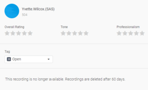 • Call Recordings: In the SAS Flex system, call recordings that are older than 60 days are purged. Now, if a recording is no longer available, a message will be shown on the call details page if you attempt to play a call that is over 60 days old.